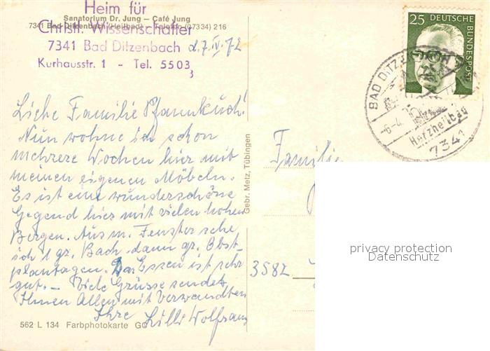72913993 alte Postkarte Bad Ditzenbach Sanatorium Dr Jung Cafe Jung postalisch gelaufen Erhaltung siehe scans [KathaD81] KatCode: 11110008117006