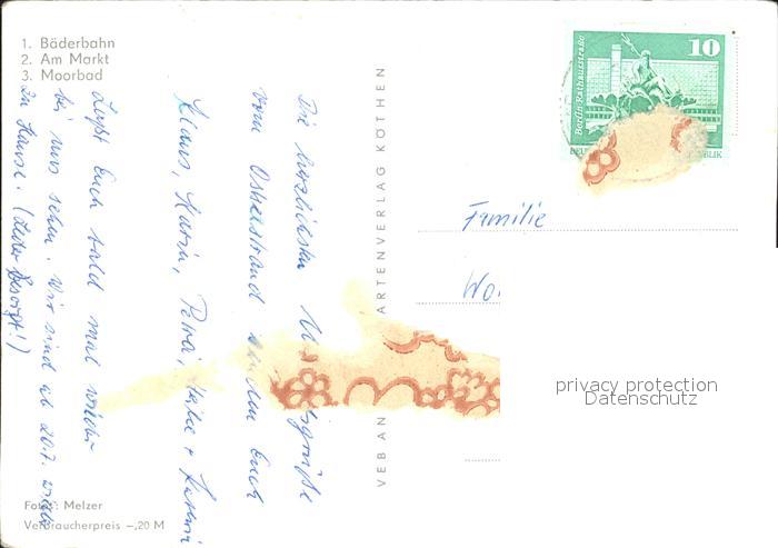 72392610 alte Postkarte Bad Doberan Baederbahn Markt Moorbad postalisch gelaufen Erhaltung siehe scans KatCode: 11110013051004