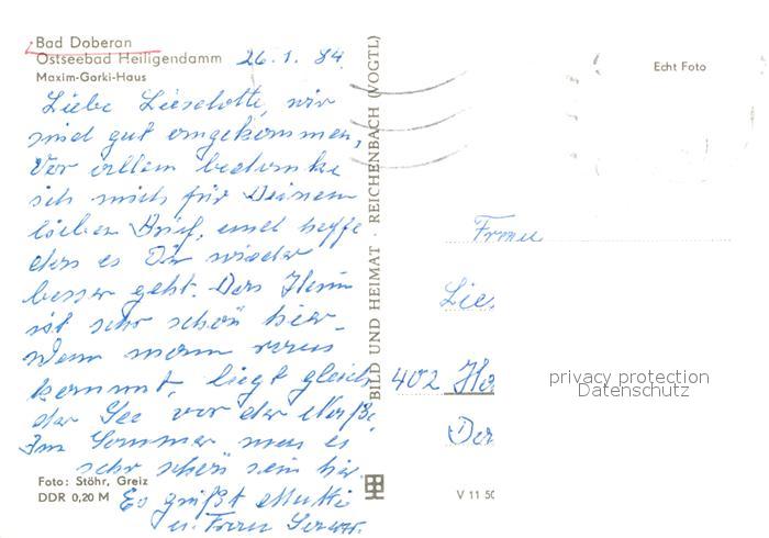 72925253 alte Postkarte Bad Doberan Heiligendamm Maxim Gorki Haus postalisch gelaufen Erhaltung siehe scans [LiesaD40] KatCode: 11110013051004