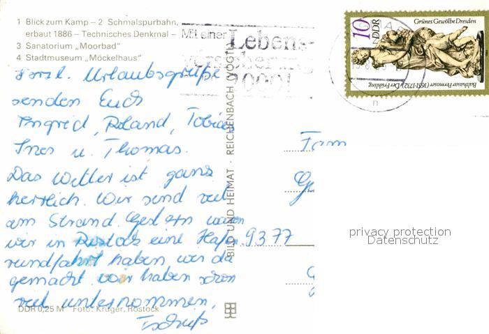 72728532 alte Postkarte Bad Doberan Kamp Schmalspurbahn Technisches Denkmal Sanatorium Stadtmuseum postalisch gelaufen Erhaltung siehe scans [FriedD77] KatCode: 11110013051004