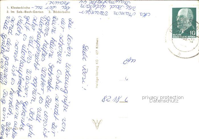 72365892 alte Postkarte Bad Doberan Klosterkirche Sebastian Bach Garten Baederbahn Dampflokomotive postalisch gelaufen Erhaltung siehe scans KatCode: 11110013051004