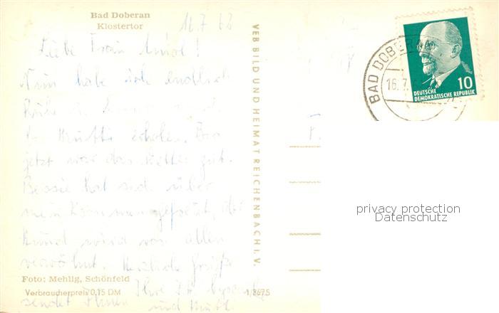 73753530 alte Postkarte Bad Doberan Klostertor postalisch gelaufen Erhaltung siehe scans [FriedD77] KatCode: 11110013051004