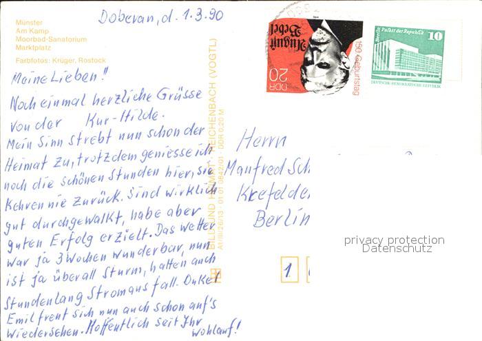 72457362 alte Postkarte Bad Doberan Muenster Am Kamp Moorbad Sanatorium Marktplatz postalisch gelaufen Erhaltung siehe scans KatCode: 11110013051004