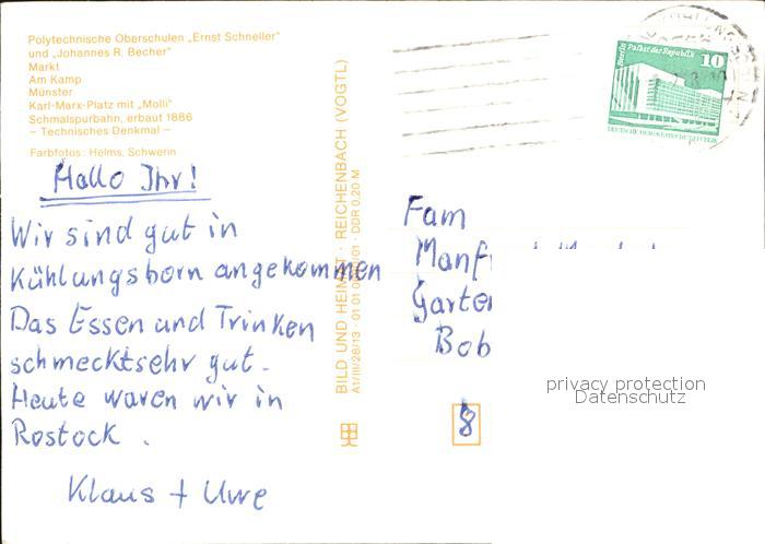 72404186 alte Postkarte Bad Doberan Polytechnische Oberschulen Ernst Schneller Markt Muenster postalisch gelaufen Erhaltung siehe scans KatCode: 11110013051004