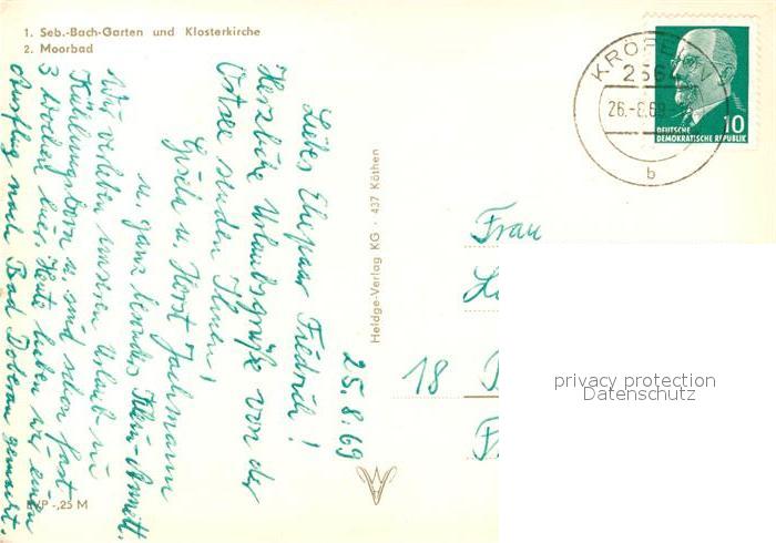 72982813 alte Postkarte Bad Doberan Sebastian Bach Garten und Klosterkirche Moorbad postalisch gelaufen Erhaltung siehe scans [WerneD78] KatCode: 11110013051004