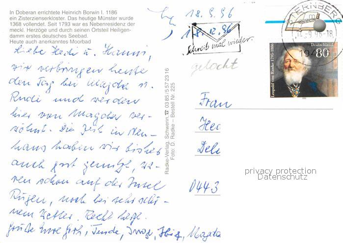 72724935 alte Postkarte Bad Doberan Zisterzienserkloster Muenster postalisch gelaufen Erhaltung siehe scans [LiesaD40] KatCode: 11110013051004