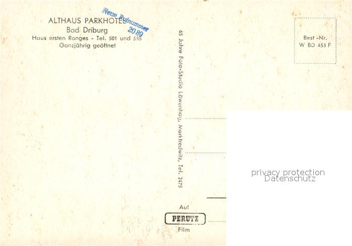 73128510 Bad Driburg Althaus Parkhotel postalisch nicht gelaufen Erhaltung siehe scans [NatalD47] KatCode: 11110005762004