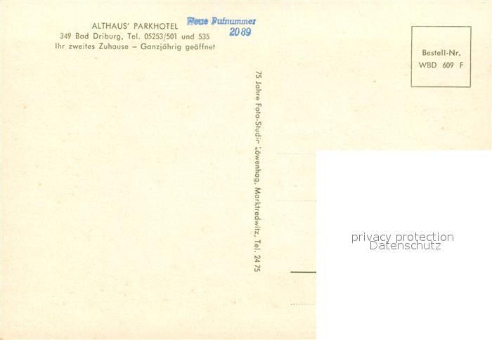 73128508 Bad Driburg Althaus Parkhotel postalisch nicht gelaufen Erhaltung siehe scans [NatalD47] KatCode: 11110005762004