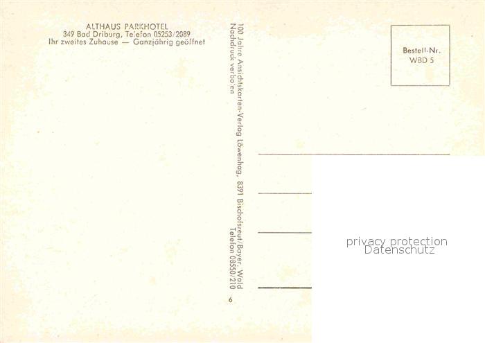 72912069 Bad Driburg Althaus Parkhotel postalisch nicht gelaufen Erhaltung siehe scans [LiesaD40] KatCode: 11110005762004