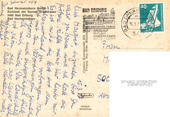 73722088 alte Postkarte Bad Driburg Bad Hermannsborn Fliegeraufnahme postalisch gelaufen Erhaltung siehe scans [WerneD78] KatCode: 11110005762004