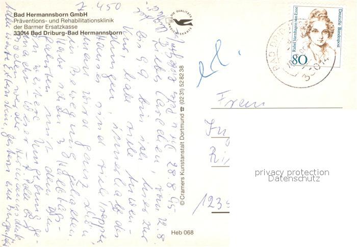 73721423 alte Postkarte Bad Driburg Bad Hermannsborn Rehaklinik der BEK Fliegeraufnahme postalisch gelaufen Erhaltung siehe scans [WerneD78] KatCode: 11110005762004