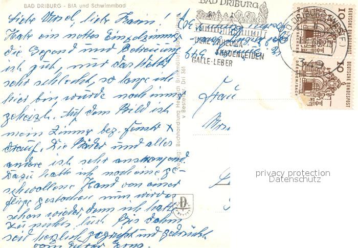 73332462 alte Postkarte Bad Driburg BfA und Schwimmbad postalisch gelaufen Erhaltung siehe scans [WerneD78] KatCode: 11110005762004