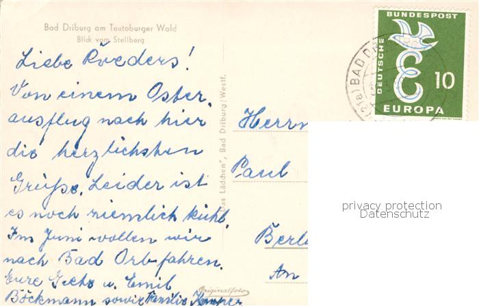 73828868 alte Postkarte Bad Driburg Blick vom Stellberg postalisch gelaufen Erhaltung siehe scans [FriedD77] KatCode: 11110005762004