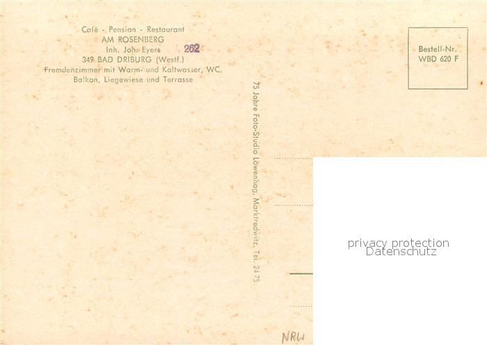 73641161 Bad Driburg Cafe Pension Restaurant Am Rosenberg postalisch nicht gelaufen Erhaltung siehe scans [WerneD78] KatCode: 11110005762004
