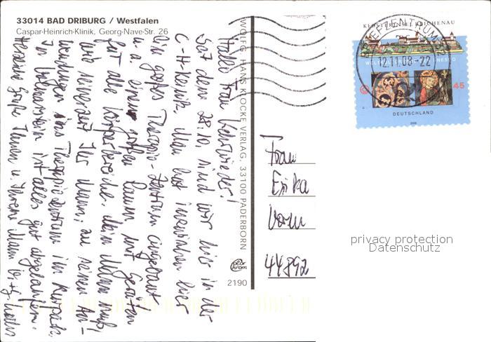 72554690 alte Postkarte Bad Driburg Caspar Heinrich Klinik postalisch gelaufen Erhaltung siehe scans [AntonD74] KatCode: 11110005762004