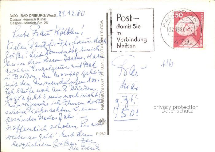 72396514 alte Postkarte Bad Driburg Caspar Heinrich Klinik postalisch gelaufen Erhaltung siehe scans KatCode: 11110005762004