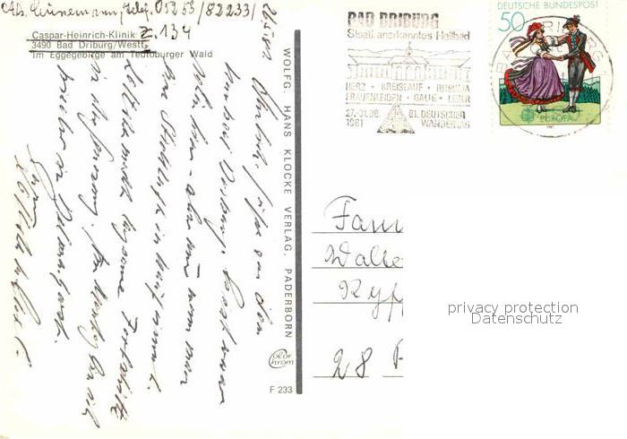 72824239 alte Postkarte Bad Driburg Caspar Heinrich Klinik postalisch gelaufen Erhaltung siehe scans [FriedD77] KatCode: 11110005762004