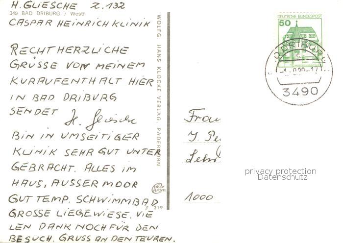 73673003 alte Postkarte Bad Driburg Caspar Heinrich Klinik Hallenbad Speisesaal postalisch gelaufen Erhaltung siehe scans [WerneD78] KatCode: 11110005762004