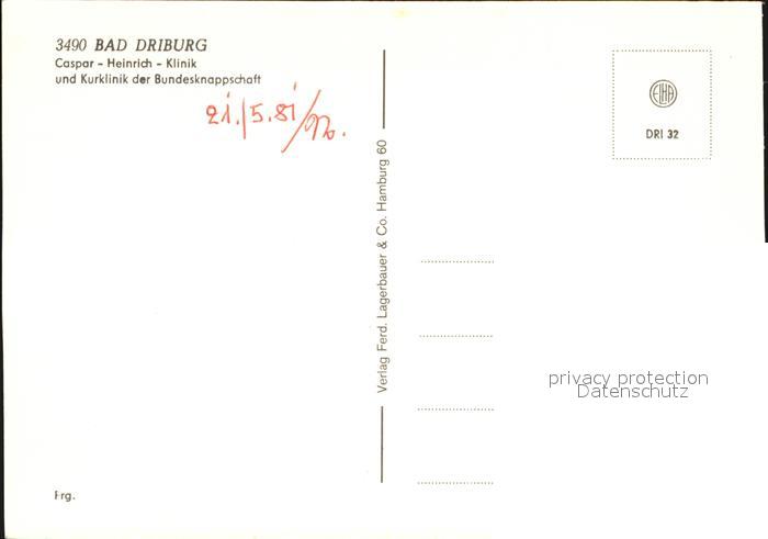 72520171 Bad Driburg Caspar Heinrich Klinik Luftbild postalisch nicht gelaufen Erhaltung siehe scans KatCode: 11110005762004