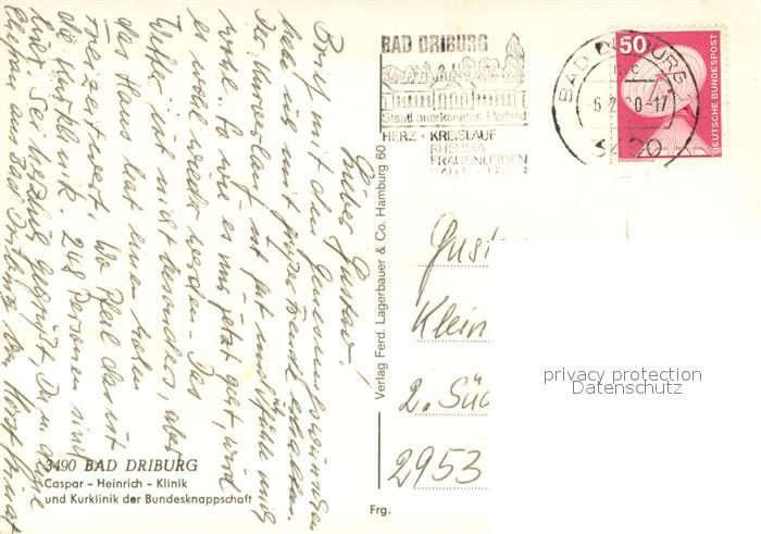 73686086 alte Postkarte Bad Driburg Caspar Heinrich Klinik und Kurklnik der Bundesknappschaft Fliegeraufnahme postalisch gelaufen Erhaltung siehe scans [WerneD78] KatCode: 11110005762004