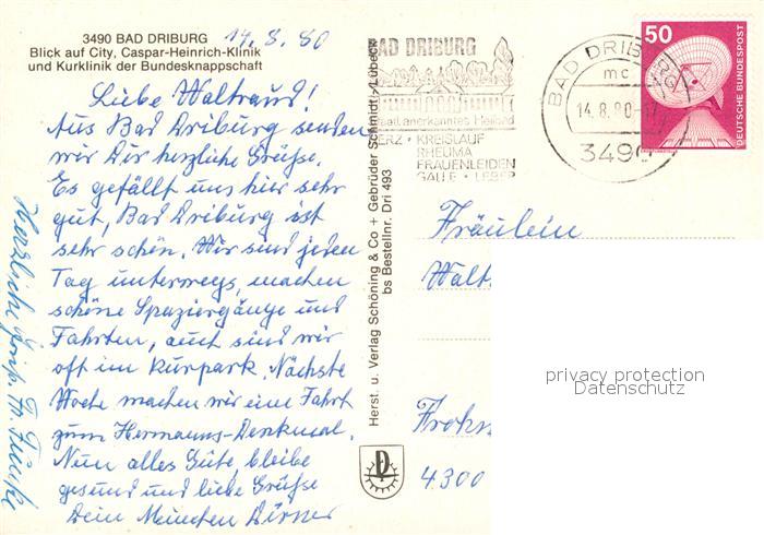 73541234 alte Postkarte Bad Driburg City Caspar Heinrich Klinik und Kurklinik postalisch gelaufen Erhaltung siehe scans [WerneD78] KatCode: 11110005762004