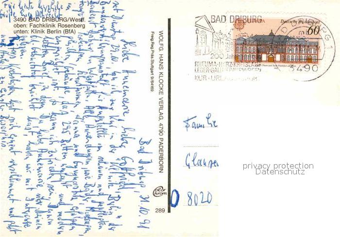 72830571 alte Postkarte Bad Driburg Fachklinik Rosenberg Klinik Berlin Fliegeraufnahme postalisch gelaufen Erhaltung siehe scans [FriedD77] KatCode: 11110005762004