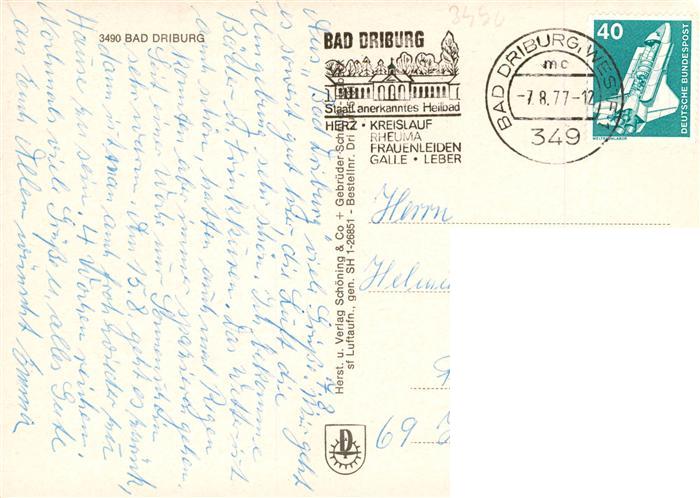 73943962 alte Postkarte Bad Driburg Fliegeraufnahme postalisch gelaufen Erhaltung siehe scans [FriedD77] KatCode: 11110005762004