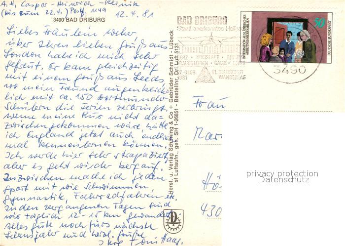 73541232 alte Postkarte Bad Driburg Fliegeraufnahme postalisch gelaufen Erhaltung siehe scans [WerneD78] KatCode: 11110005762004