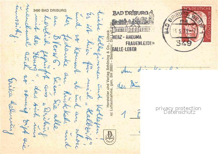 72846189 alte Postkarte Bad Driburg Fliegeraufnahme postalisch gelaufen Erhaltung siehe scans [FriedD77] KatCode: 11110005762004
