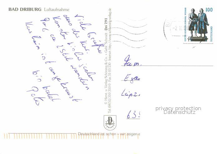 72832013 alte Postkarte Bad Driburg Fliegeraufnahme postalisch gelaufen Erhaltung siehe scans [FriedD77] KatCode: 11110005762004