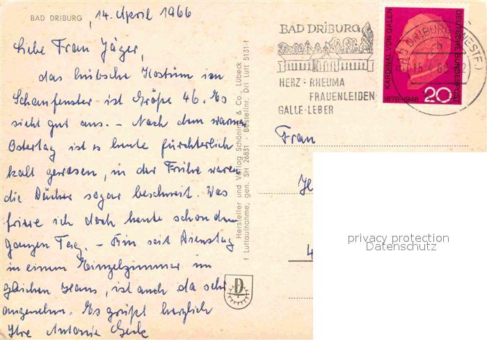 72800787 alte Postkarte Bad Driburg Fliegeraufnahme postalisch gelaufen Erhaltung siehe scans [FriedD77] KatCode: 11110005762004
