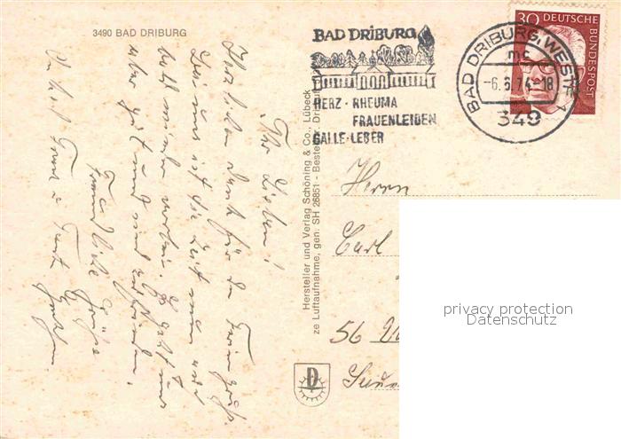 72798779 alte Postkarte Bad Driburg Fliegeraufnahme postalisch gelaufen Erhaltung siehe scans [FriedD77] KatCode: 11110005762004