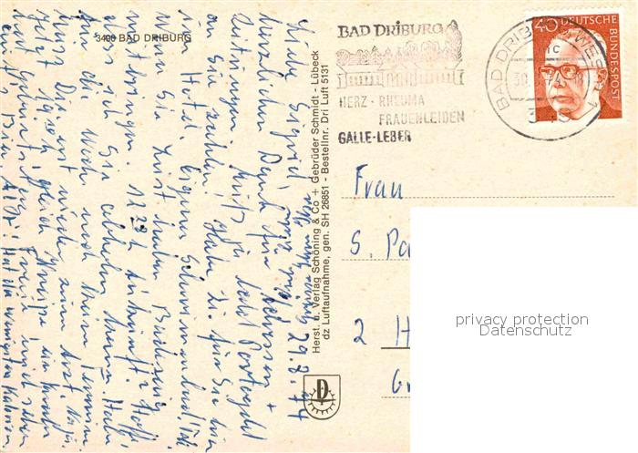 72692838 alte Postkarte Bad Driburg Fliegeraufnahme postalisch gelaufen Erhaltung siehe scans [FriedD77] KatCode: 11110005762004