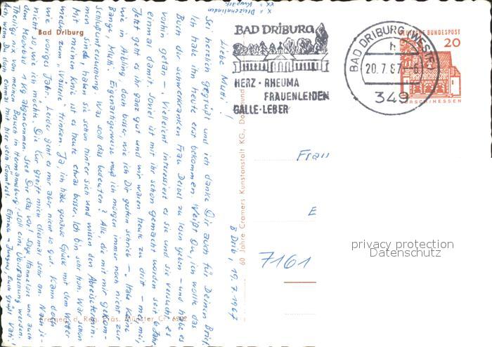 72304815 alte Postkarte Bad Driburg Fliegeraufnahme postalisch gelaufen Erhaltung siehe scans KatCode: 11110005762004