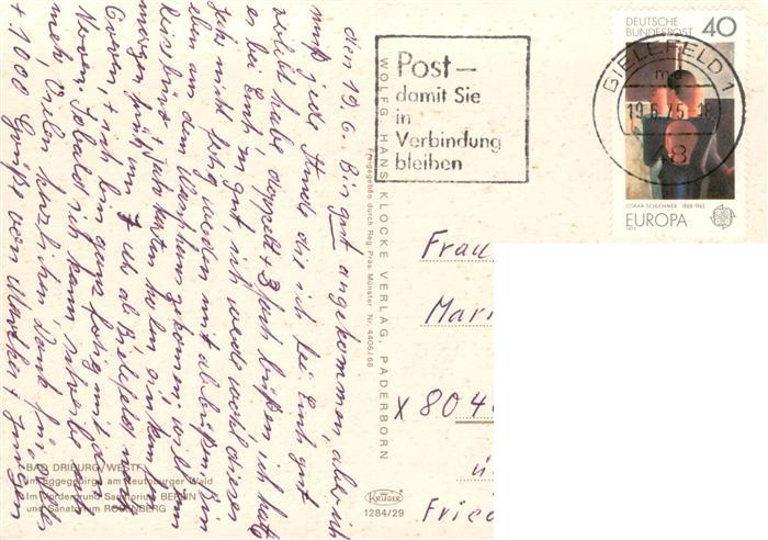 73879239 alte Postkarte Bad Driburg Fliegeraufnahme mit Sanatorium Berlin und Sanatorium Rosenberg postalisch gelaufen Erhaltung siehe scans [WerneD78] KatCode: 11110005762004
