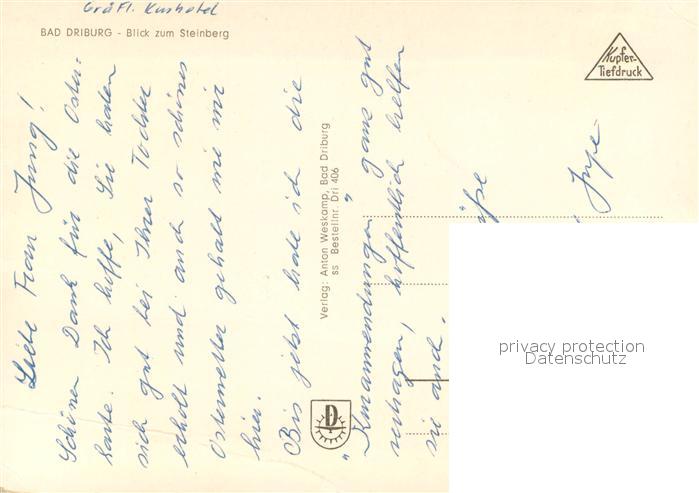73684176 Bad Driburg Fliegeraufnahme mit Steinberg postalisch nicht gelaufen Erhaltung siehe scans [LiesaD40] KatCode: 11110005762004