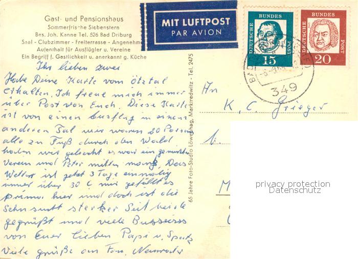 73651157 alte Postkarte Bad Driburg Gast- und Pensionshaus Sommerfrische Siebenstern Terrasse postalisch gelaufen Erhaltung siehe scans [FriedD77] KatCode: 11110005762004