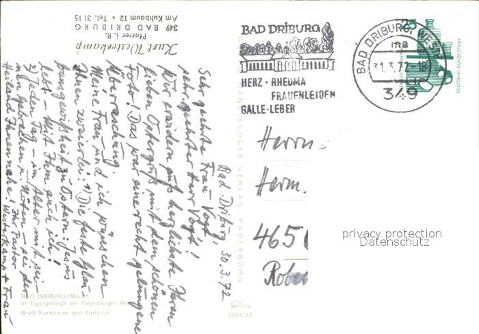 72262003 alte Postkarte Bad Driburg Graefliche Kurhaeuser Kurhotel postalisch gelaufen Erhaltung siehe scans KatCode: 11110005762004
