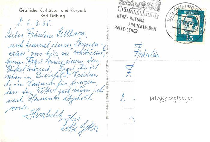 72761745 alte Postkarte Bad Driburg Graefliche Kurhaeuser Kurpark postalisch gelaufen Erhaltung siehe scans [NatalD47] KatCode: 11110005762004