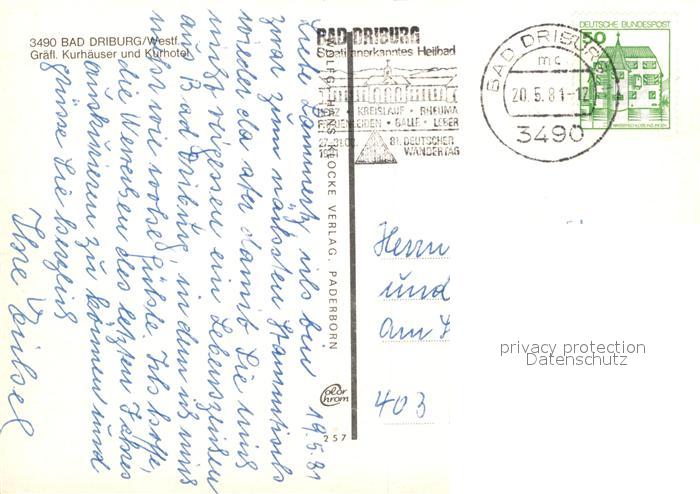 72964702 alte Postkarte Bad Driburg Graefliche Kurhaeuser und Kurhotel Blumenbeet postalisch gelaufen Erhaltung siehe scans [FriedD77] KatCode: 11110005762004