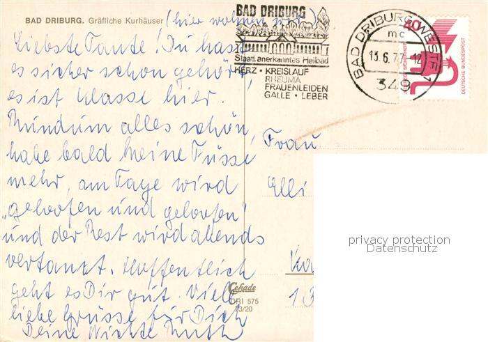 73792743 alte Postkarte Bad Driburg Graefliche Kurhaeuser postalisch gelaufen Erhaltung siehe scans [FriedD77] KatCode: 11110005762004