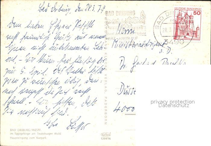 72526434 alte Postkarte Bad Driburg Haupteingang zum Kurpark postalisch gelaufen Erhaltung siehe scans KatCode: 11110005762004