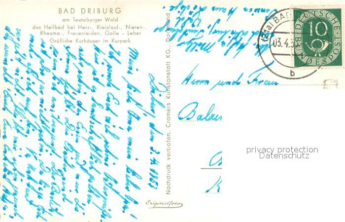 73617609 alte Postkarte Bad Driburg Heilbad Teutoburger Wald Kurhaeuser im Kurpark Fliegeraufnahme postalisch gelaufen Erhaltung siehe scans [FriedD77] KatCode: 11110005762004