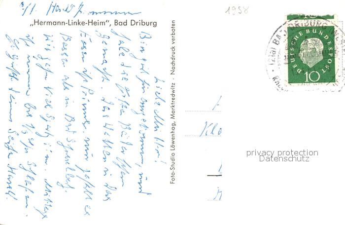 72937586 alte Postkarte Bad Driburg Hermann-Linke-Heim postalisch gelaufen Erhaltung siehe scans [NatalD47] KatCode: 11110005762004