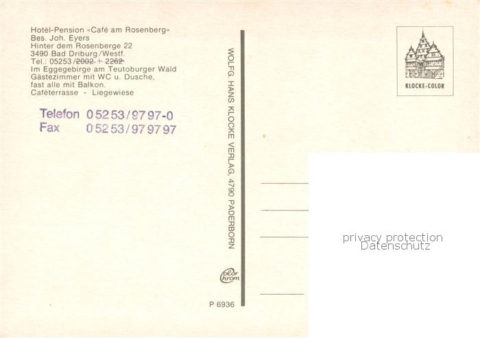 73776760 Bad Driburg Hotel Pension Cafe am Rosenberg Gastraeume Terrasse postalisch nicht gelaufen Erhaltung siehe scans [WerneD78] KatCode: 11110005762004