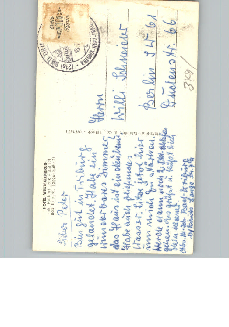 31129624 Bad Driburg Hotel Westfalenkrug postalisch nicht gelaufen KatCode: