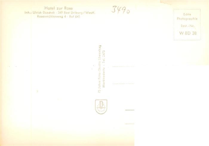 73870287 Bad Driburg Hotel zur Rose Gastraeume postalisch nicht gelaufen Erhaltung siehe scans [FriedD77] KatCode: 11110005762004