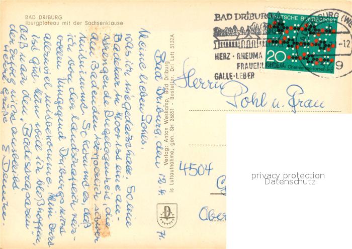 73127281 alte Postkarte Bad Driburg Iburgplateau mit Sachsenklause postalisch gelaufen Erhaltung siehe scans [LiesaD40] KatCode: 11110005762004