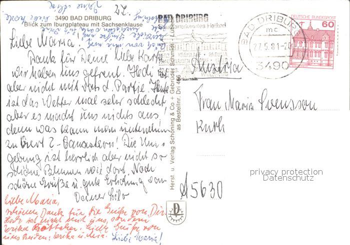 72922037 alte Postkarte Bad Driburg Iburgplateau Sachsenklause postalisch gelaufen Erhaltung siehe scans [MatthD68] KatCode: 11110005762004