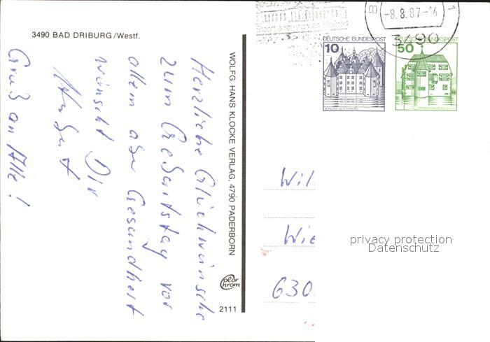 72547593 alte Postkarte Bad Driburg Kath Kirche Rosengarten Fontaene Fussgaengerzone Kurklinik postalisch gelaufen Erhaltung siehe scans [WerneD78 kv017box] KatCode: 11110005762004